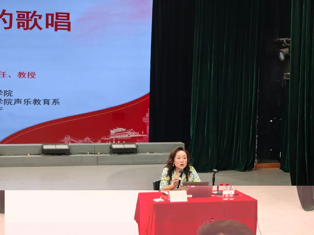 在講座中,柏林林教授憑借其深厚的藝術修養與豐富的教學經驗,深入淺出地闡述了歌唱的四大核心要素:氣息、位置、共鳴和語言,并詳細講解了聲音的運用方法及如何通過科學的訓練途徑達到美妙的歌唱效果。此外,她還分享了金鐵霖教授所創立的民族聲樂“七字标準”——“聲、情、字、味、表、養、象”,以及金氏教學體系的核心精髓,即中國民族聲樂應兼具“科學性、民族性、藝術性、時代性”這四大特性。
